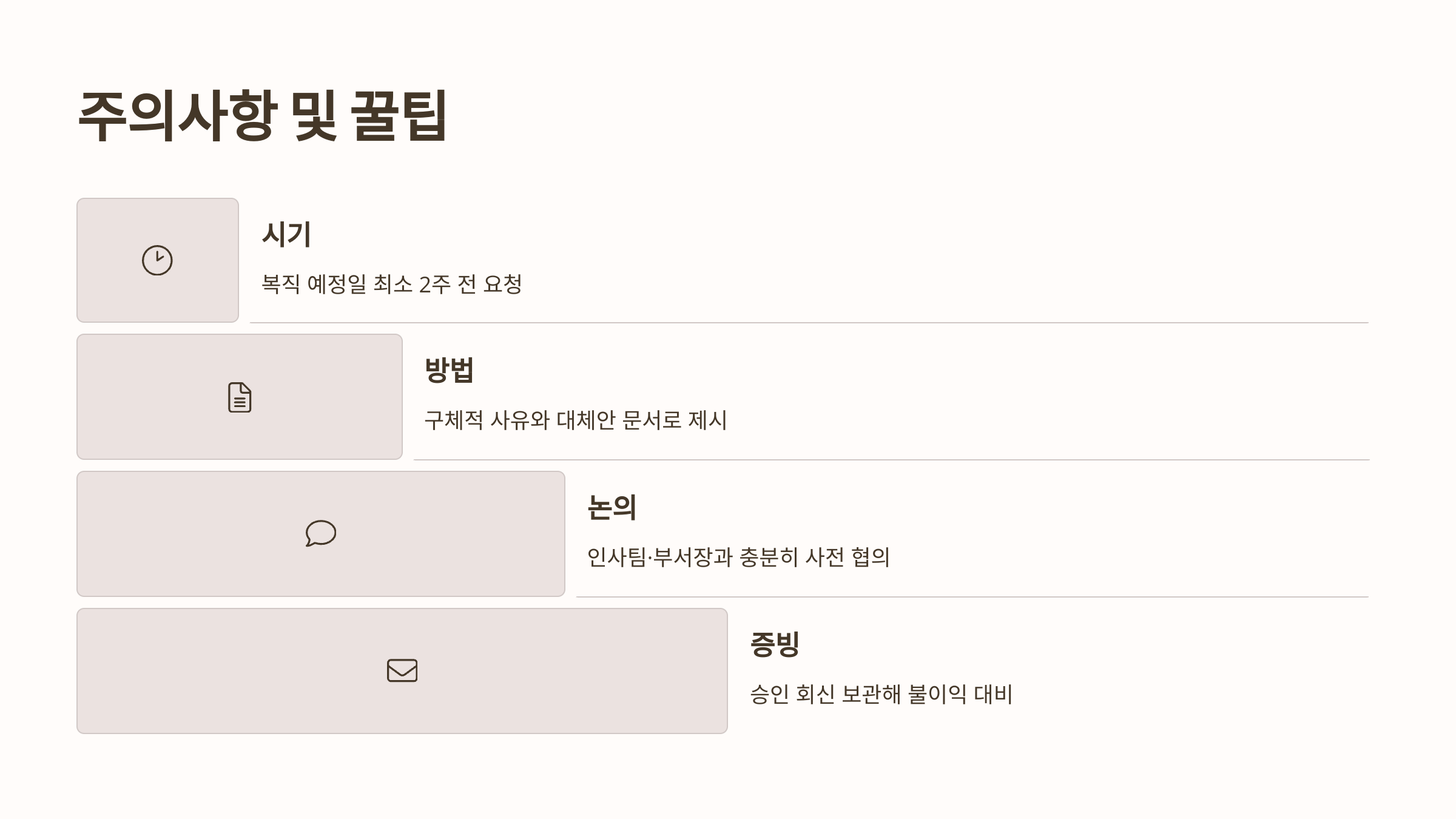 •  인사팀·부서장과 충분히 사전 논의 후 문서화