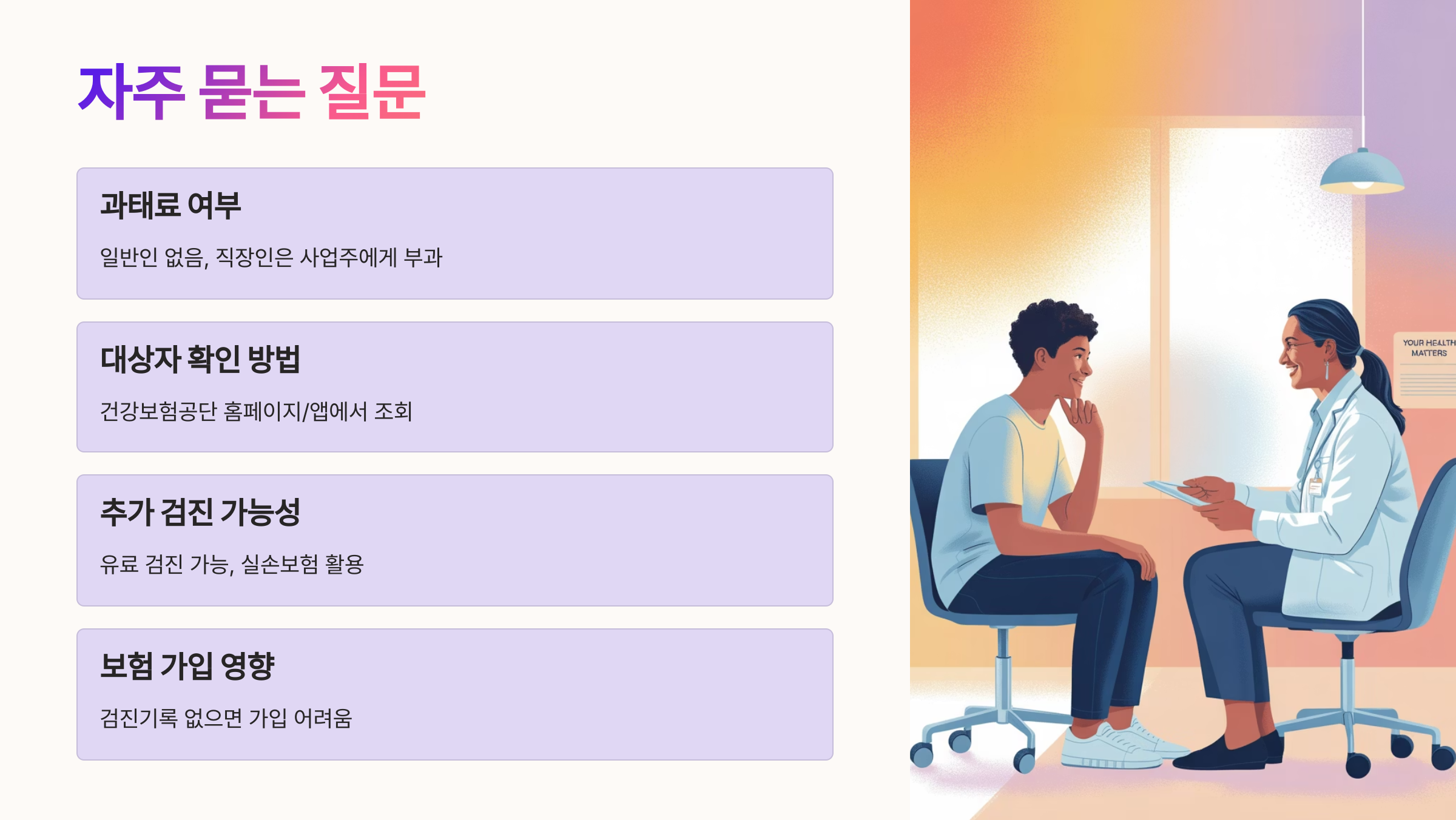 건강을 지키는 건 물론, 보험이나 재정적인 측면에서도 건강검진 대상자 안받으면 실제로 손해를 볼 수 있다는 사실, 꼭 기억하세요!