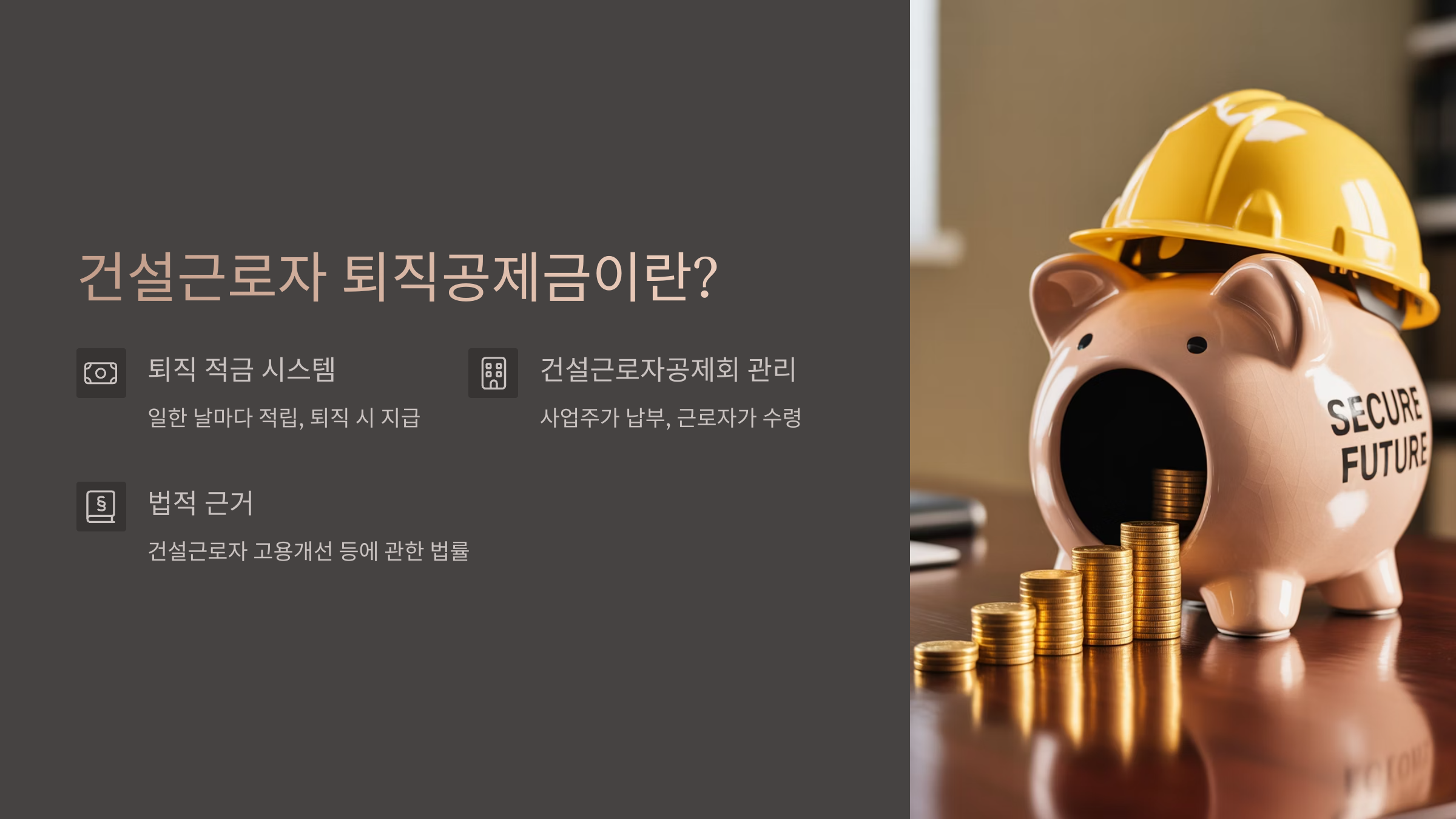 건설현장에서 일하는 분들은 매일 땀 흘려 일하지만, 퇴직할 때 받을 수 있는 돈이 보장되기 어려운 경우가 많아요. 그래서 이분들의 노후와 퇴직을 위해 만들어진 제도가 바로 건설근로자 퇴직공제금이에요.