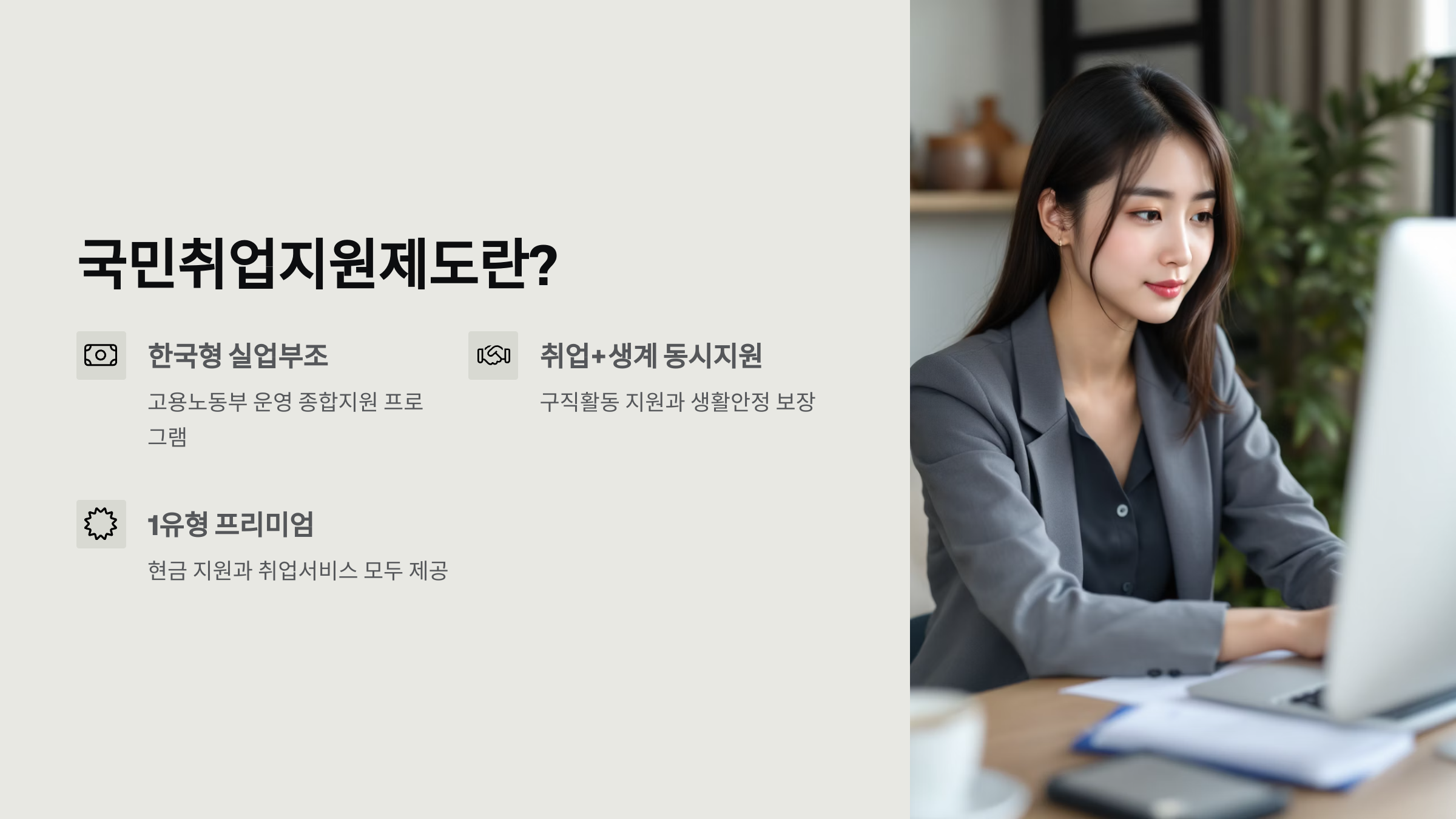 국민취업지원제도는 구직활동을 원하는 사람에게 취업지원 서비스와 생계지원을 동시에 제공하는 종합지원 프로그램이에요. 고용노동부가 시행하고 있으며, 실업급여를 받지 못하는 이들을 위한 보완제도로 자리 잡았어요.