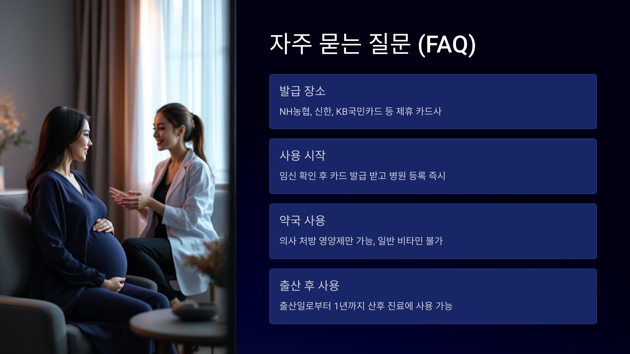 A2. 임신 확인 후 카드 발급을 받고 병원에 등록하면, 그 즉시 사용 가능해요. 보통 임신 6~8주 이후부터 발급 시작돼요.