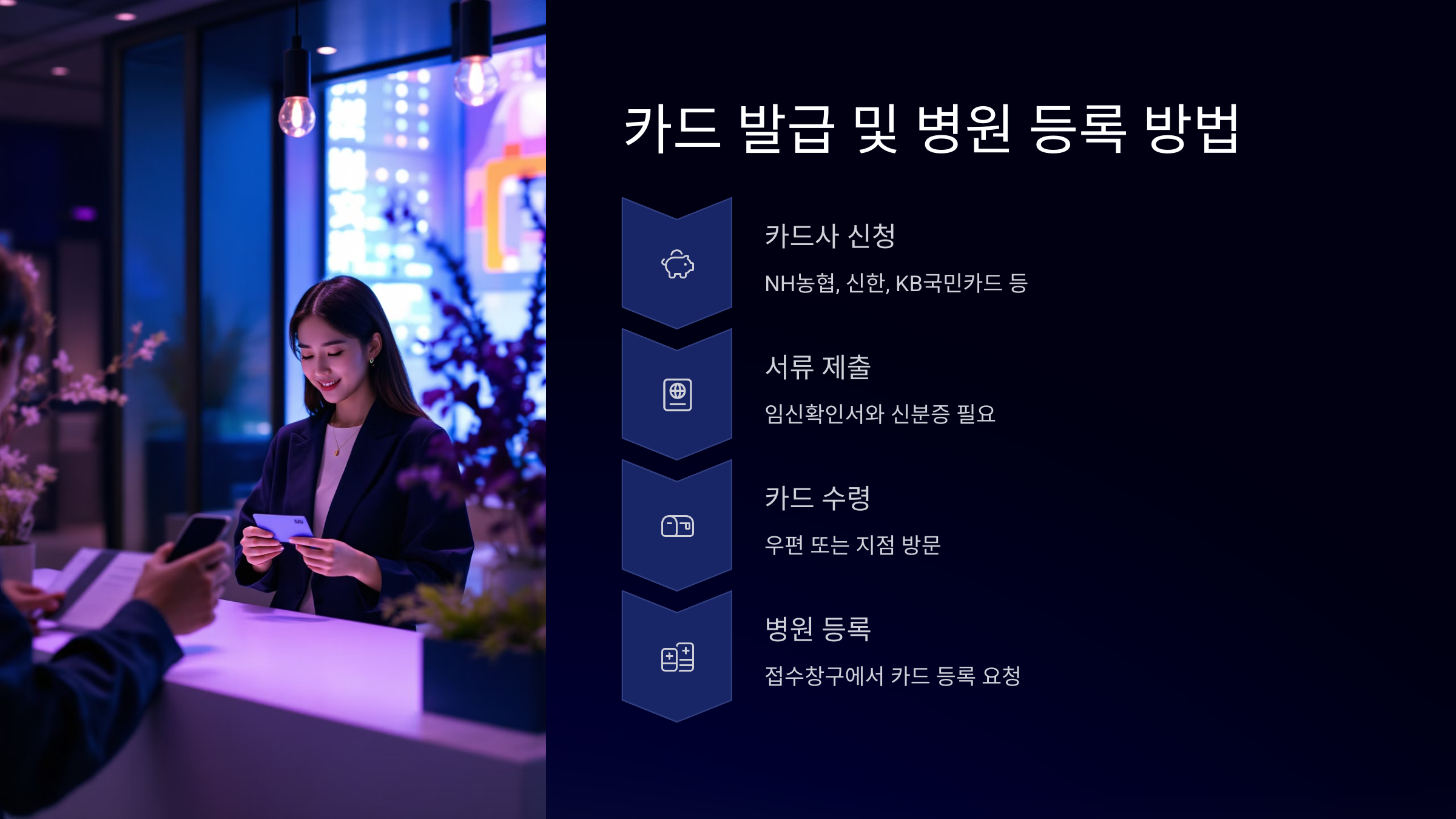 카드 발급은 농협, 신한, 비씨카드 등 제휴사에서 가능하며, 온라인 신청도 매우 간단해요. 보건소나 병원에서 카드 수령 후, 병원에 등록만 하면 바로 사용할 수 있어요.