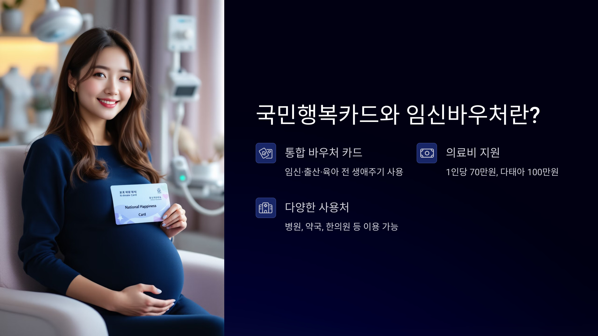 국민행복카드는 임신·출산·육아 등 전 생애주기 동안 사용할 수 있는 통합 바우처 카드예요. 특히 임신 중에는 ‘임신바우처’ 혜택이 함께 제공돼서 의료비 부담을 크게 줄일 수 있어요.