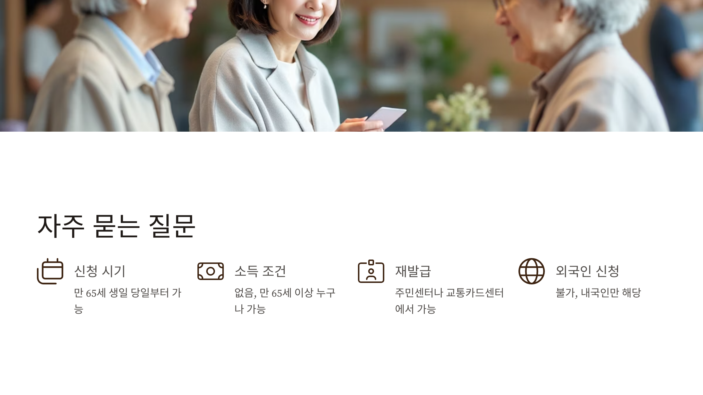 제도 도입 배경에는 **고령자의 사회적 고립 해소**, **병원 접근성 개선**, **복지관·문화공간 이용 확대**라는 공공 목적이 뚜렷해요. 그래서 교통비 지원이 아닌 ‘무상 이용권’이라는 형태로 설계됐어요.