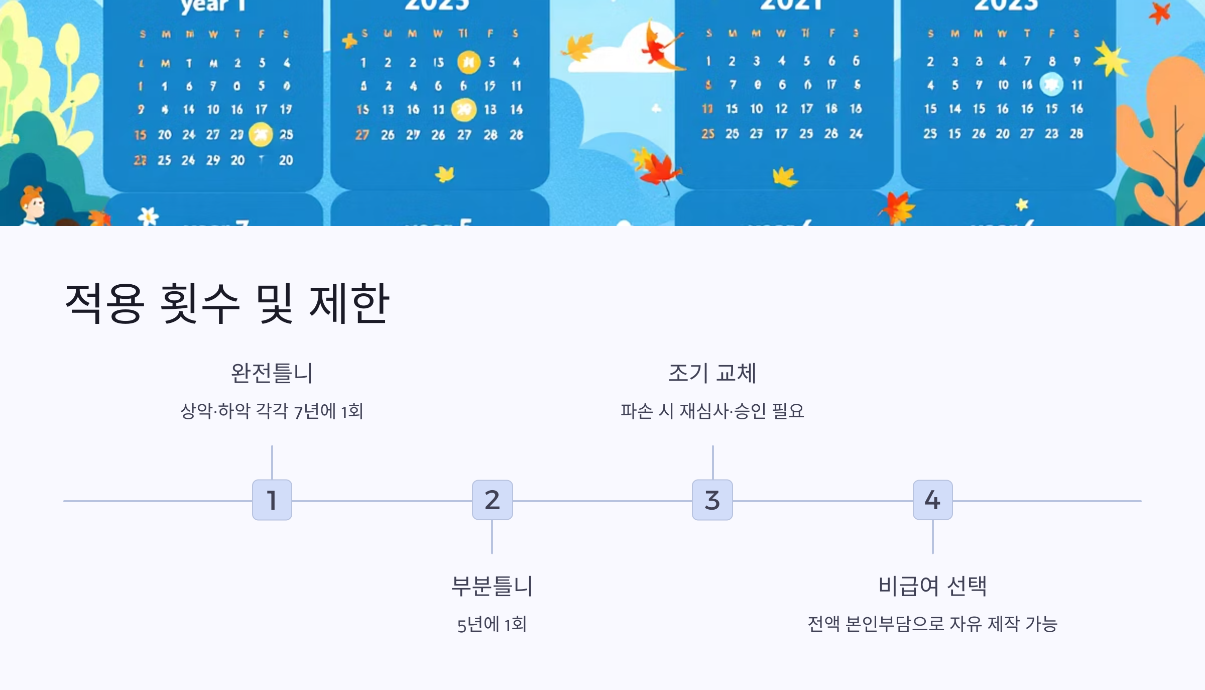 노인 틀니 건강보험은 아무 때나 자유롭게 반복 제작이 가능한 건 아니에요. 일정한 주기와 제한 조건이 있어요. 불필요한 재제작을 방지하기 위한 장치랍니다.