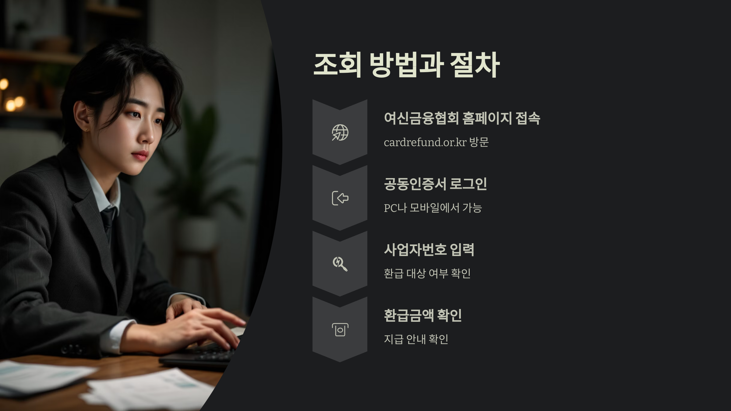 카드수수료 환급 여부는 여신금융협회에서 운영하는 온라인 시스템을 통해 간편하게 조회할 수 있어요. PC나 모바일 모두 가능하며, 공인인증서나 공동인증서가 필요해요.