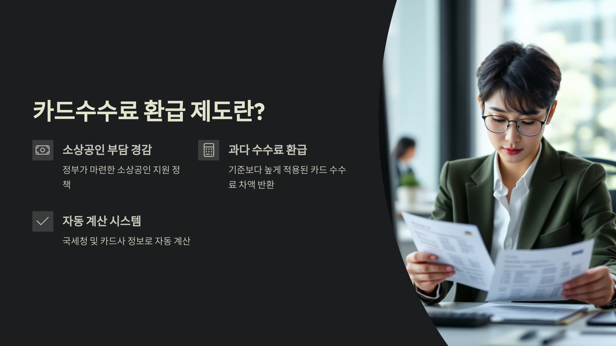 카드수수료 환급 제도는 소상공인의 부담을 덜어주기 위해 정부가 마련한 지원 정책이에요. 신용카드나 체크카드로 결제를 받는 사업자는 매출에 따라 일정 비율의 수수료를 카드사에 내게 되죠. 그런데 이 중 일부는 실제로는 과다 부과되었을 가능성이 있어요.