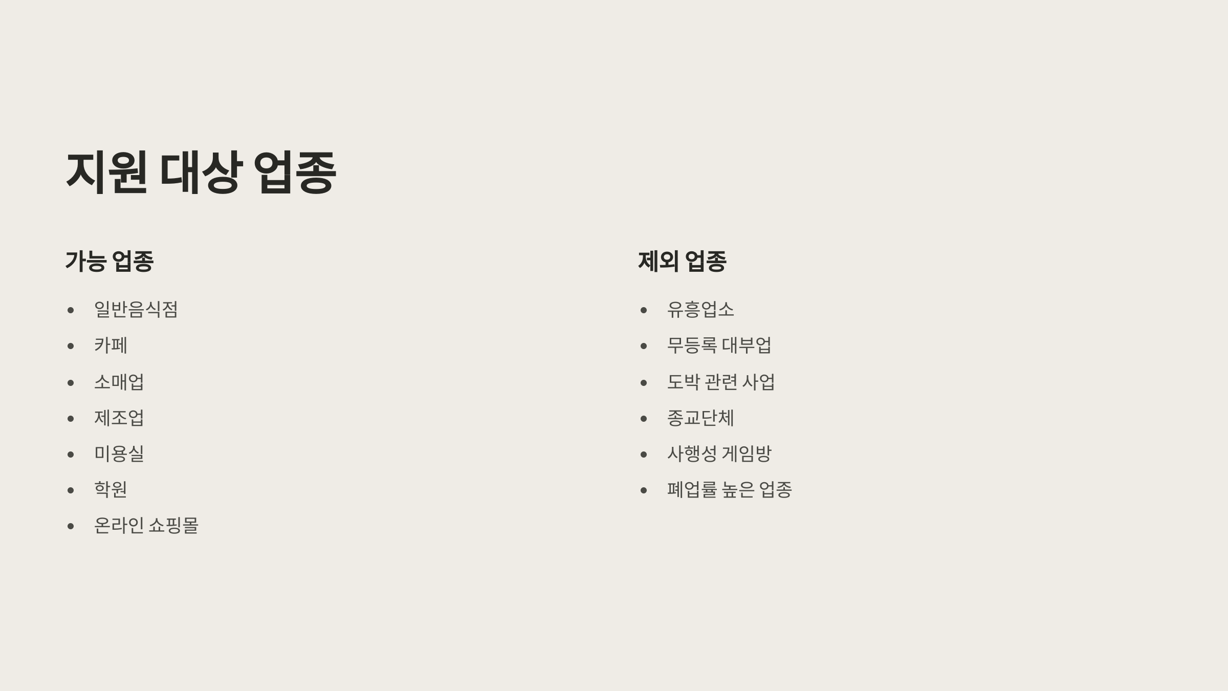 지원대상 업종과 제외 업종