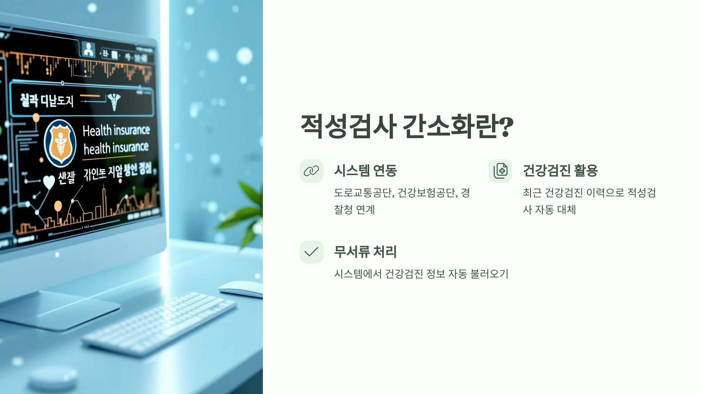 적성검사 간소화가 가능한 이유는 건강보험공단과 도로교통공단 간 시스템 연동 덕분이에요.