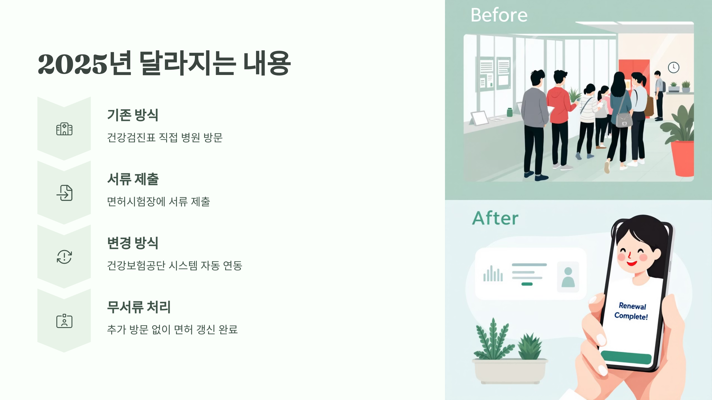 이제 면허 갱신은 훨씬 간편하게! 건강보험공단과 경찰청 시스템이 자동으로 연동되어 무서류 진행이 가능해졌어요. 지금부터 대상자와 신청 방법, 주의할 점까지 자세히 알려드릴게요!