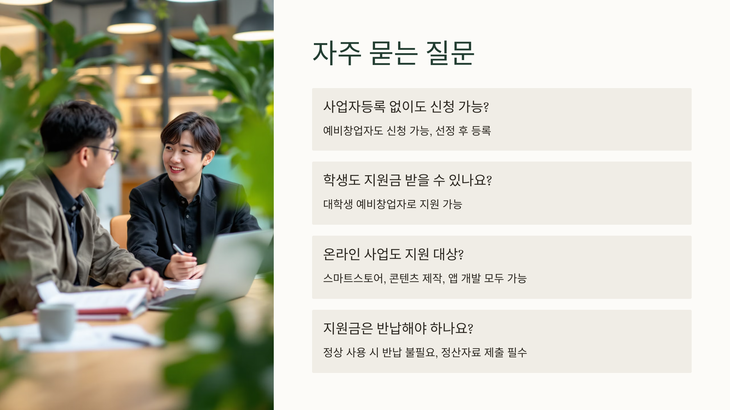 창업 지원금은 단순한 현금 지원이 아니라, 창업자가 성공적으로 자립하고 성장할 수 있도록 단계별로 지원해주는 ‘성장 사다리’ 같은 존재예요. 혼자라도 시작할 수 있다는 자신감을 주죠.