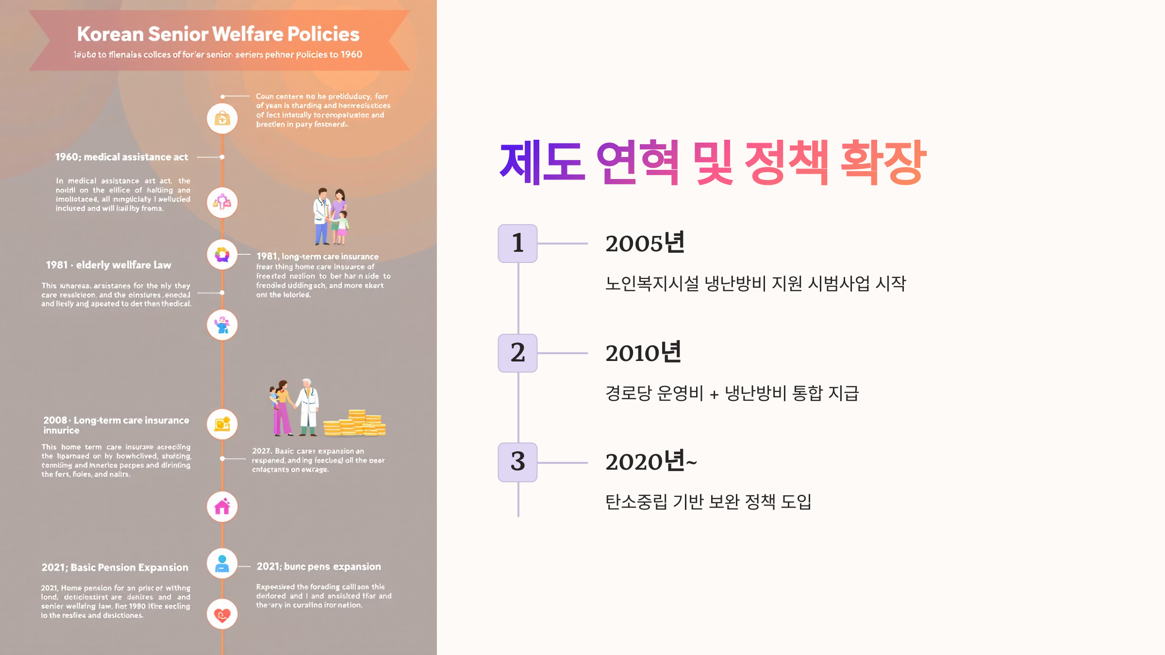 | 2005년 | 노인복지시설 냉난방비 지원 | 기초 지자체 단위 시범사업 시작 |